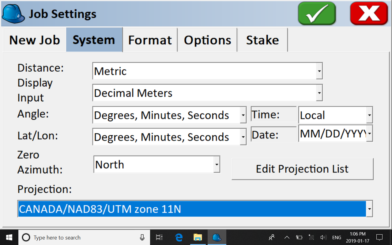 Always make sure you select the correct coordinate system projection for your survey area.