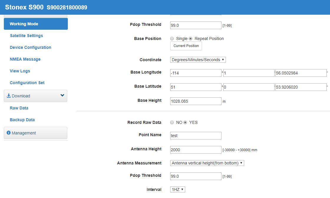 Settings >> Working Mode. For our S900 base receiver, we can select to