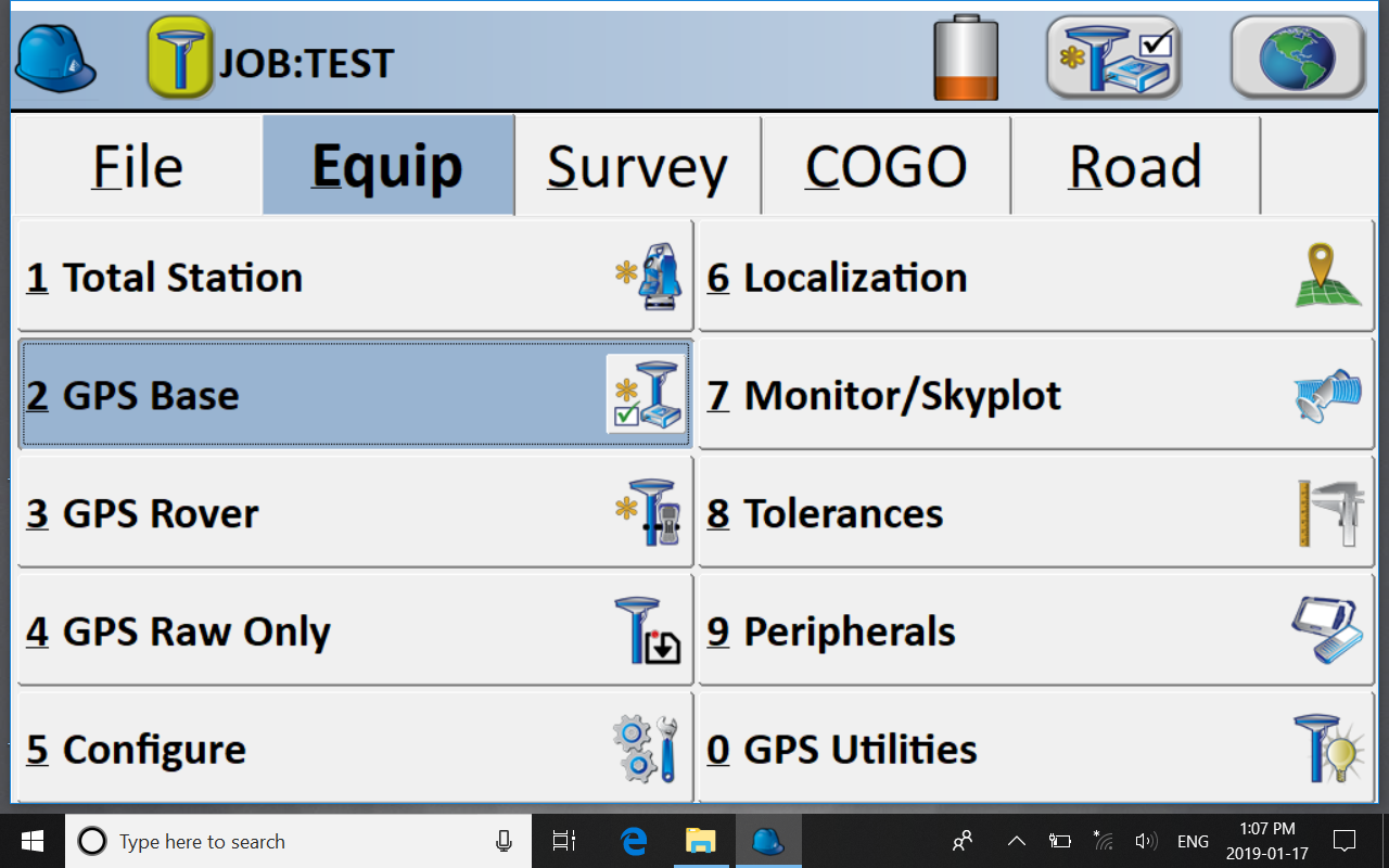 Equip >> GPS Base, and then verify that