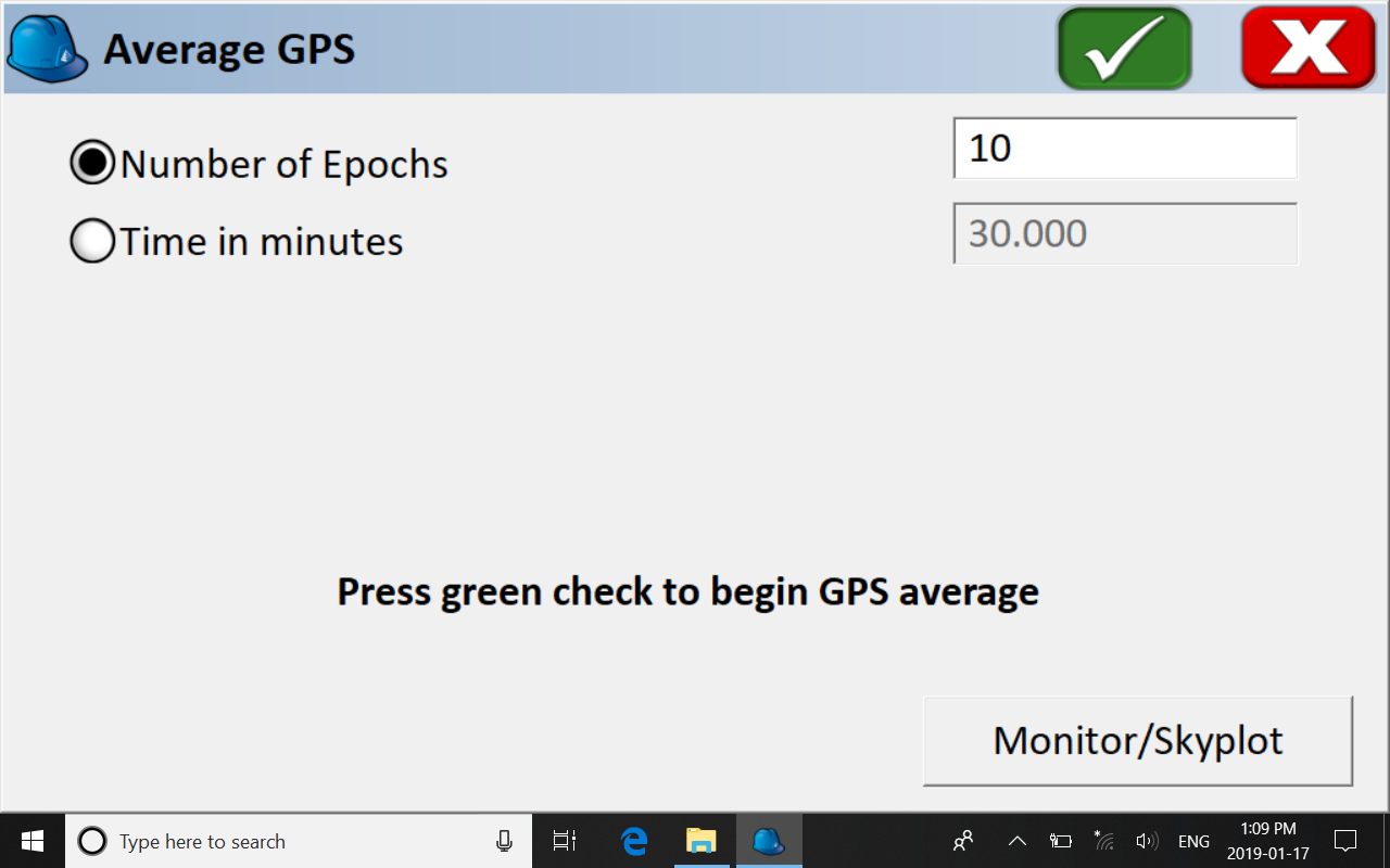 Based on 10 epochs (default) we get the base’s averaged position from the available satellites and we hit the green check mark.